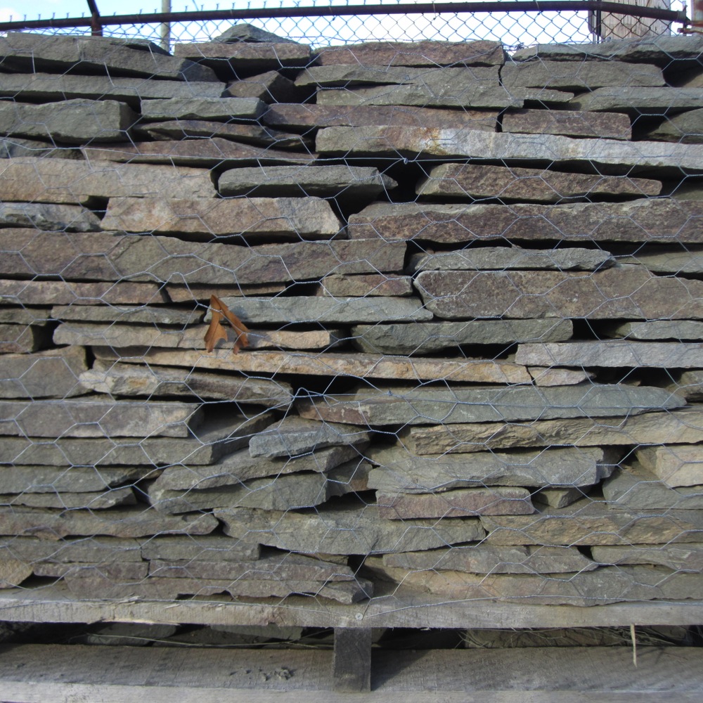 A thin wall stone with roughly flat top and bottom surfaces making it ideal for a variety of stone wall applications. Colors range from blue to brown.