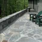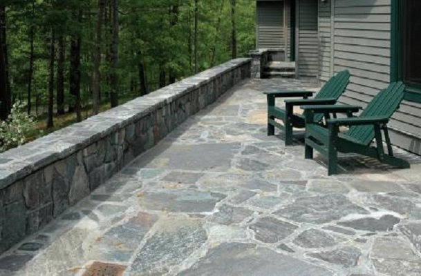 An elegant, enduring, medium to coarse grain granite featuring 70% Hudson River blue with a mixture of green, black, pink, brown, burgundy, and white. A small percentage has black speckles throughout consisting of red and black garnet inclusions and quartz crystals.