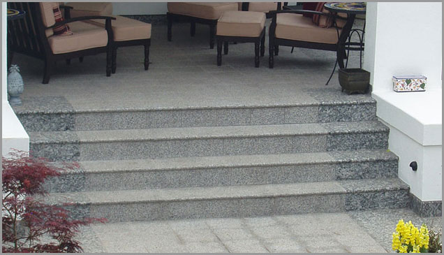 A natural stone stair tread known for its speckled colors and high strength. Granite’s vivid natural color palette and near diamond-hard non-porous surface makes it the ideal material for indoor and outdoor use.